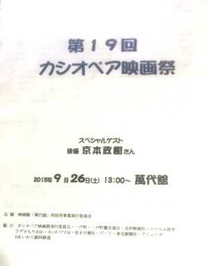 明治時代からある懐かしい映画館で毎年行われている映画祭、今年のゲストは我らがマサキこと京本政樹さんです。ィヤッホーゥ!イーハトーブ!(意味不明)