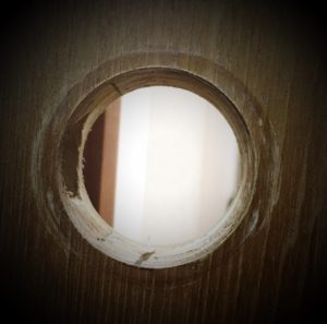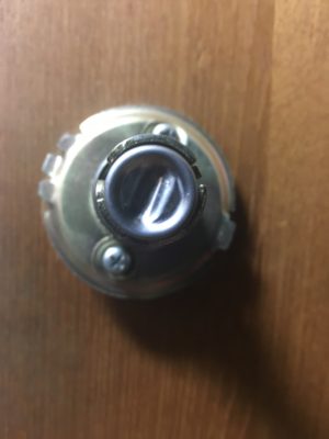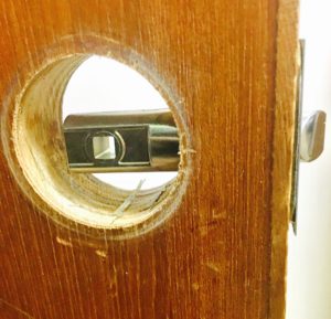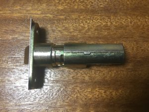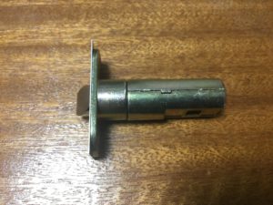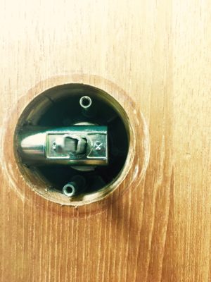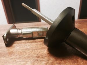 あ、書き忘れましたが、ドアノブのカチャって開け閉めする部分「ラッチ」も今回は引っこ抜いて新しくすることにしました。ドアのヘリにある長方形の「フロント」をネジをとって外しちゃいました。