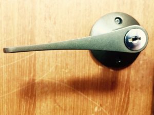 これは部屋の中からですが、こういう中からポチッと鍵をかけられるタイプのドアです。