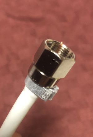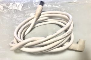 これがうちのBSCS用ケーブル。片方のL字の口は問題ないのでそのままにしておきます。もう片方がよく抜けるので、こちらをねじ式に変更しますよ。