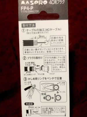 買ってきたプラグはこれ。アンテナといえばマスプロさんです(他に知らないだけ)