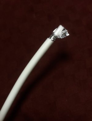 次は4mm残して(説明書参照)編線とその下のアルミ膜を同様に切り離します。網線が切りにくい。。。