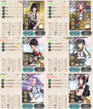 自分が改二にした子たちが持ってない武器ばかりだったけど、、、とりあえずこのレベルならこんなんでもクリア。