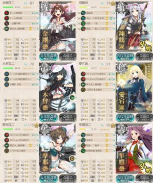 空母、重巡(航巡)、軽巡をそれぞれ1以上ずつ編成する必要がありますが、どうしてもランダムになる模様。。。