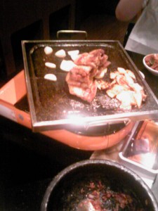 で、都バスでマサキたちが行ってた店とは違うんだけど、ずっと行きたかった有名な店があって。サムギョプサルを出してくれる「おんどる」って店です。一時期サムギョプサルブームな頃、この店と他の何店かでどこに行こうかってメニューを見ながらハアハアしてたんですが、個人的にすごい行きたかった「おんどる」に決めて、突然妹を連れて行ったわけです。