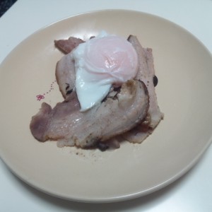 豚肉の塩漬け。ポーチ度エッグ添え。