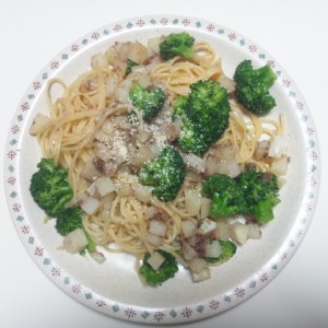アンチョビソースのパスタ。ブロッコリーとジャガイモ入り。