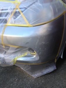 さて、無惨な姿になったバンパーにいよいよ色をつけます。