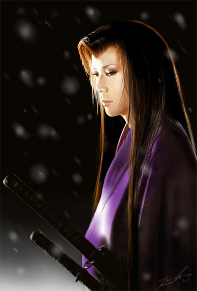 下ろし髪 刀 時代劇 着物 美剣士 雪