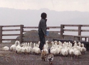 お姉さんが行く先々アヒルたちがひょこひょこついていくのが可愛いです。ひょこひょこというか、わさわさというか。意外と足が早いですアヒル。一瞬にして次々と移動して行きます。可愛いな♪