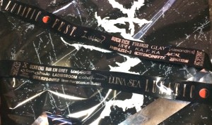 ルナフェス2日目です。前日皆さんとわいわい楽しく打ち上げし、家に帰って数時間しか寝てないけど、同じく駐車場を確保すべく、早朝にがんばって起きると、今日は若干ゆっくり目に適当なメイクをし、会場へ。2日券なので今日はリストバンド交換なく先へ。そのままグッズ列に並びました。昨日と全然違ってスムーズ!やはり1日目に並んだ人が多かったのねー。2日目はGLAYさんのおかげかとても晴れていましたが、早く並べたのですぐに建物に入ることができました。時間があるので中ではみんな床に座り込めて楽チン♪